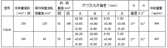 國標(GB12971.3-91)內(nèi)包式鋼鋁接觸線機械性能、結(jié)構(gòu)尺寸表